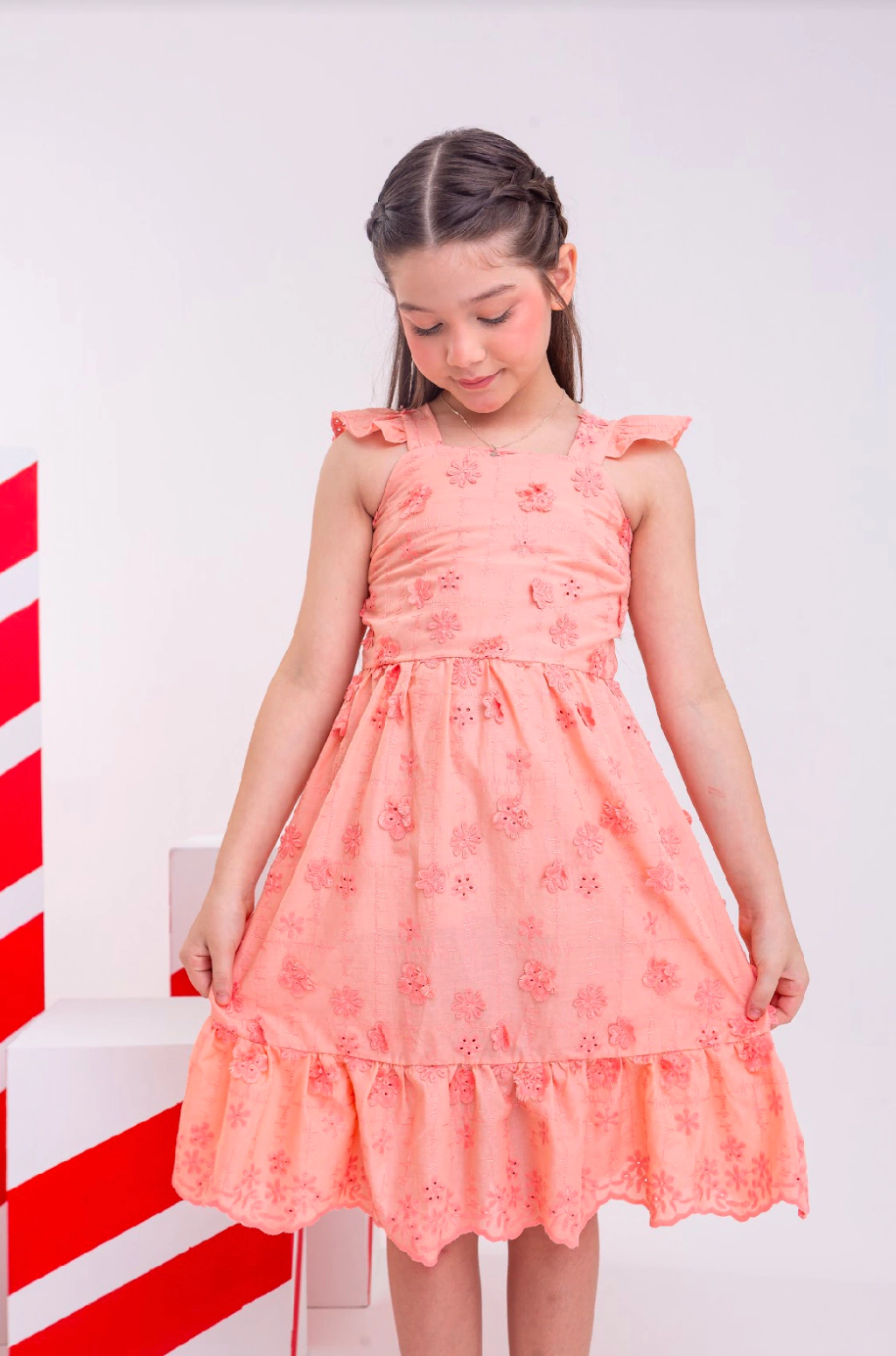 Vestido infantil camila Rose é confeccionado em laise de algodão 3D, tecido leve e sofisticado que oferece textura única e delicada. Forrado para maior conforto, possui fechamento em zíper nas costas, proporcionando praticidade ao vestir. Perfeito para quem busca um look lindo e elegante em ocasiões especiais.